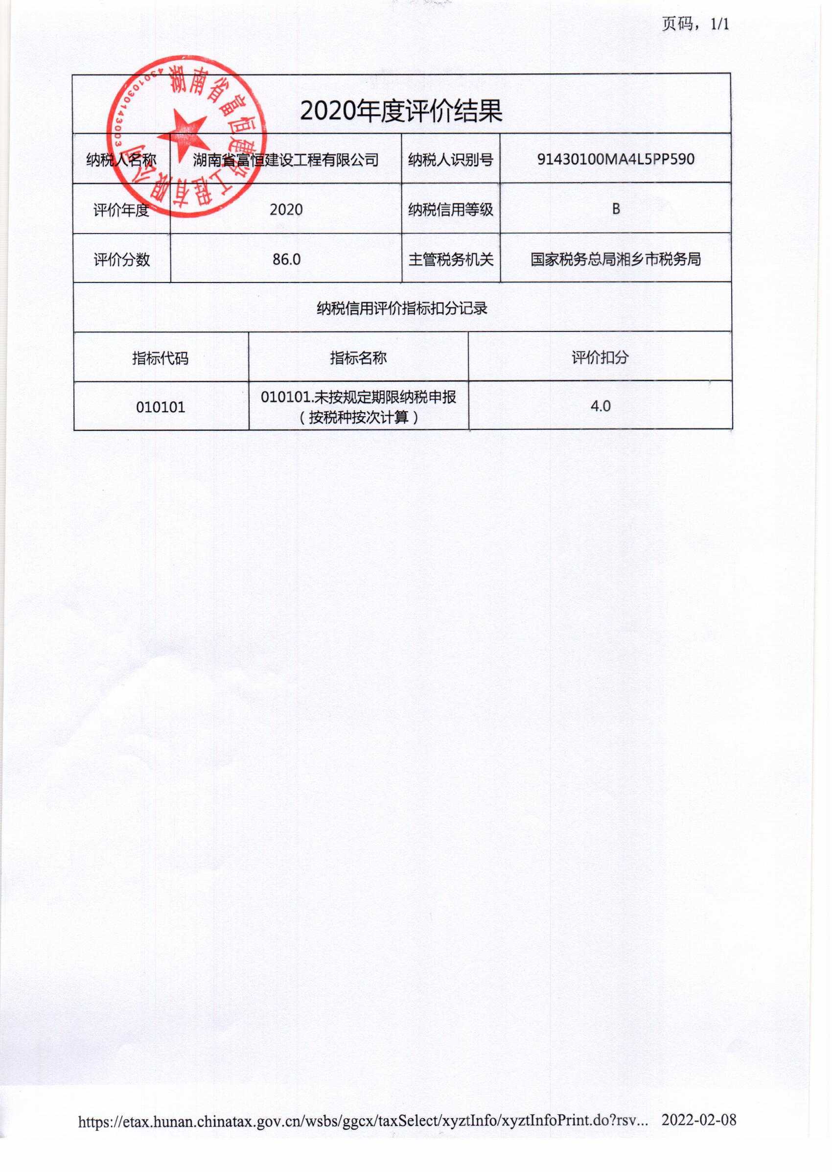 企業(yè)納稅信用等級(jí)報(bào)告: