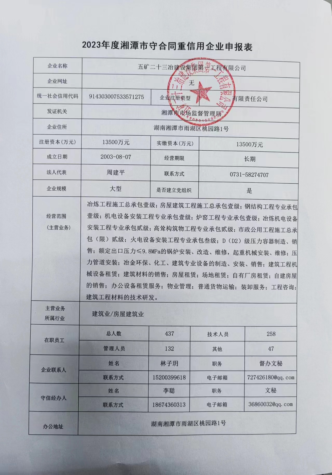 本企業(yè)根據(jù)《湘潭市守合同重信用企業(yè)申報規(guī)定》等編制 2023 年度企業(yè)信用報告書,并保證本報告書內(nèi)容真實(shí)、準(zhǔn)確、完整。
