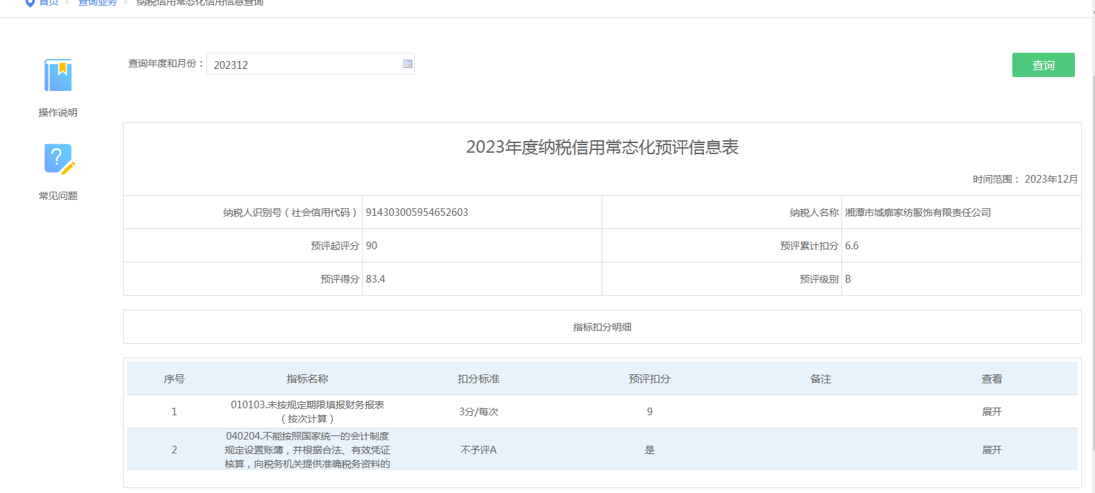 企業(yè)納稅信用等級報告: